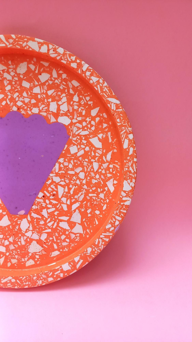 Okrągła, duża taca sprawdzi się jako taca do serwowania kawy lub innych napojów. Spełni również funkcję jako podstawka pod świece, doniczki z ukochanymi roślinami lub kosmetyki i flakoniki perfum. Jeśli kochasz pozytywne, kolorowe wzornictwo lub szukasz prezentu dla designerskiego wariata :) ta taca może skraść Twoje serce!