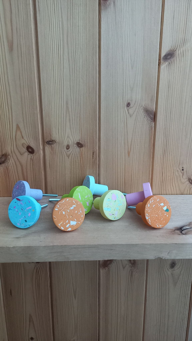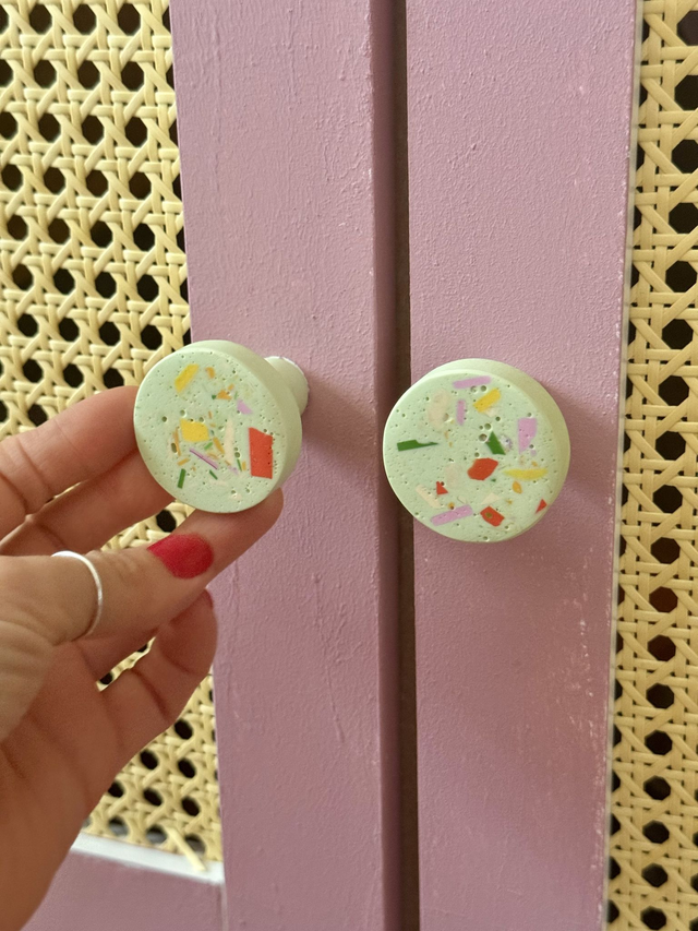Oryginalny, ręcznie wykonany uchwyt do mebli z wzorem terazzo to idealny pomysł na oryginalne wystylizowanie wnętrza. Udekoruj front swojej szuflady gałką do mebli z wzorem lastryko, aby nadać świeżości swojemu wnętrzu!