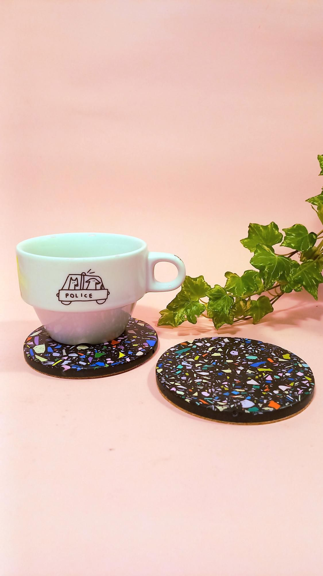 Kolorowa podkładka pod kubek, okrągła, organizer, czarna, drobne lastryko, 9 cm