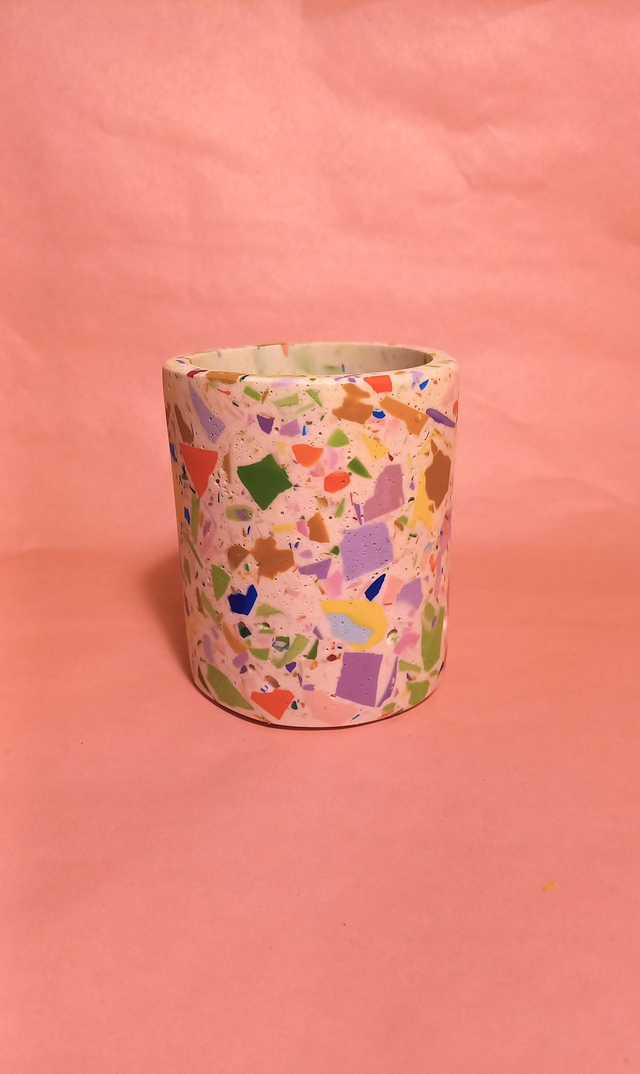 Okrągły pojemnik lastryko do przechowywania i organizacji akcesoriów. Przyda się w łazience - na kosmetyki, akcesoria do pielęgnacji, na biurku - do porządkowania długopisów i innych drobiazgów, w kuchni i jadalni - na sztućce, dekoracje lub świecę.