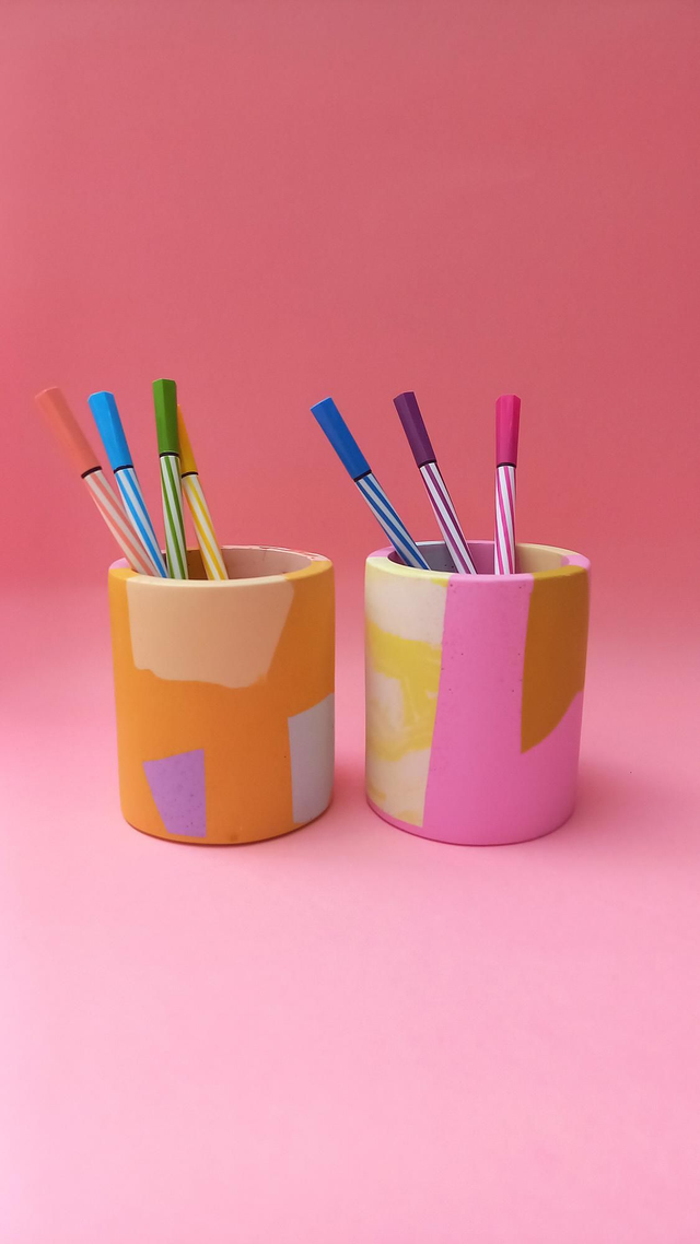 Kubek, okrągły pojemnik na akcesoria, na biurko, do łazienki, różowy, musztardowy