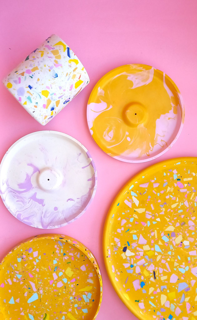 Musztardowa taca dekoracyjna to przepiękny, designerski dodatek do salonu i kuchni. Wypełniona jest kolorowym lastryko w pastelowych i mocnych kolorach.