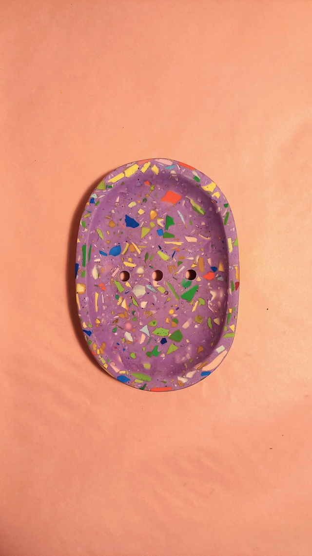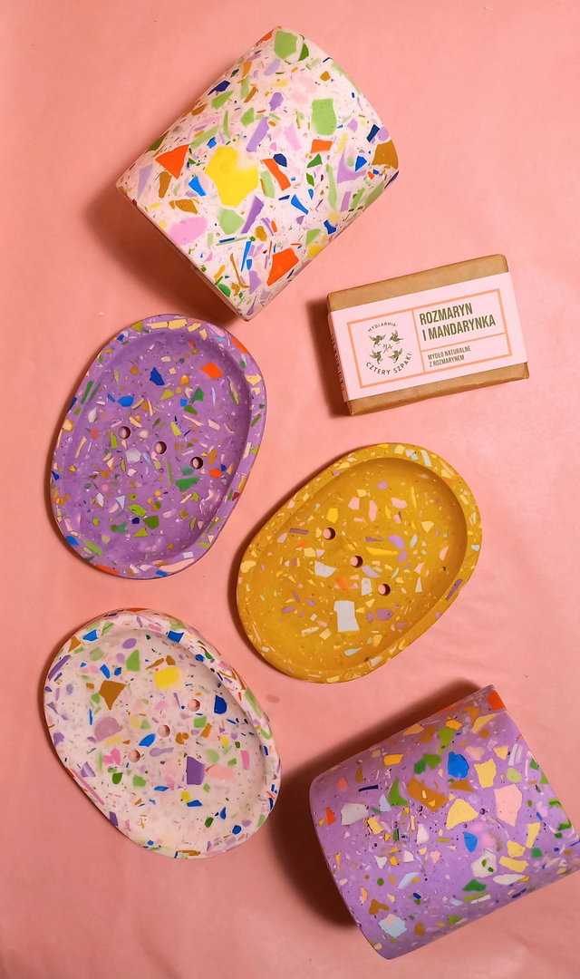 Mydelniczka terrazzo to idealne rozwiązanie do przechowywania mydła w sposób higieniczny. Otwory odprowadzające wodę sprawiają, że mydło nie rozpuszcza się, a powierzchnia pozostaje sucha i czysta. Dzięki solidnej konstrukcji, mydelniczka jest odporna na zarysowania i uszkodzenia, co zapewnia jej długotrwałe użytkowanie.