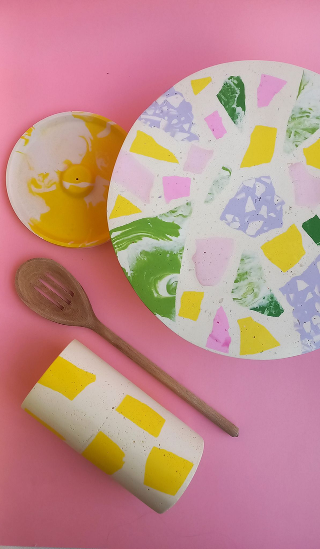 Patera w przepiękny, słodki wzór terrazzo zachwyci Twoich gości! Mam przynajmniej taką nadzieję! ;) Dodaj koloru na swoim stole i pochwal się jakie upiekłaś dziś ciasto! :) Będzie również idealna na Wielkanoc, ma mnóstwo wiosennych kolorów.