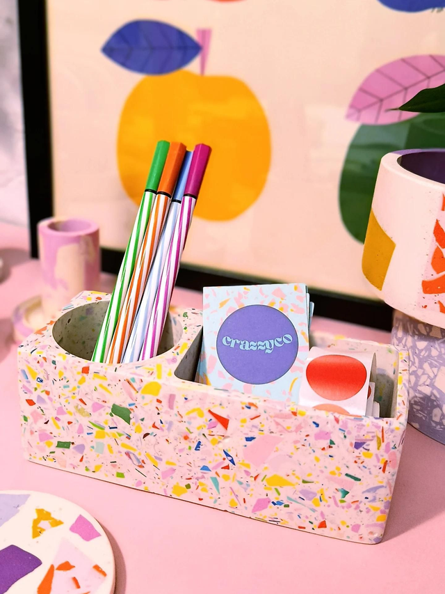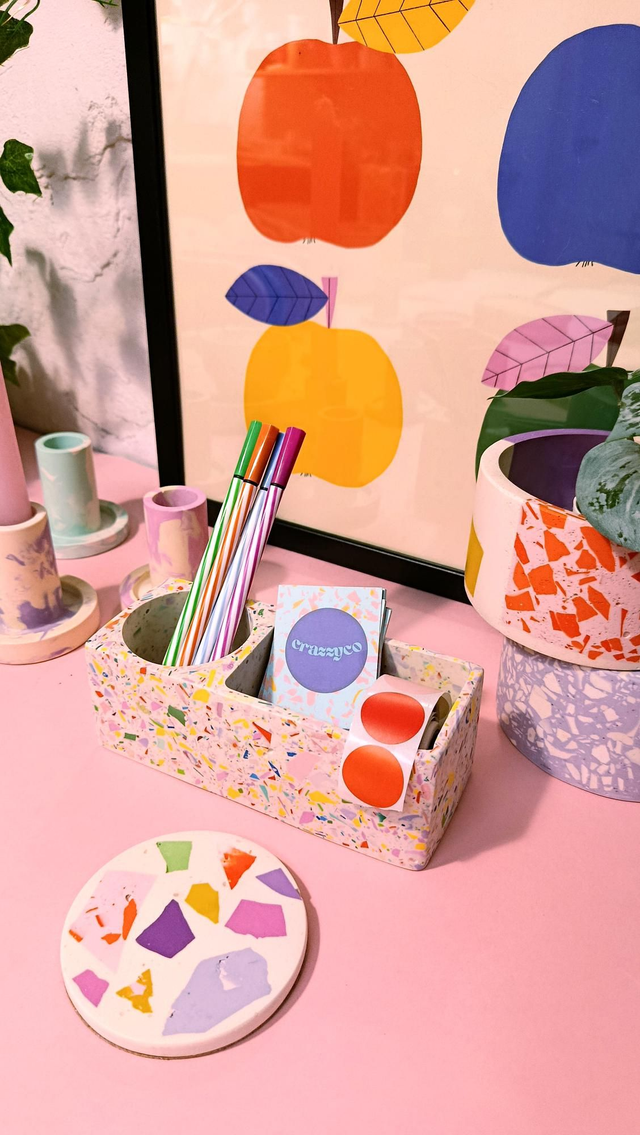 Kolorowy organizer na biurko we wzór lastryko do przyjemniejszej pracy ✨