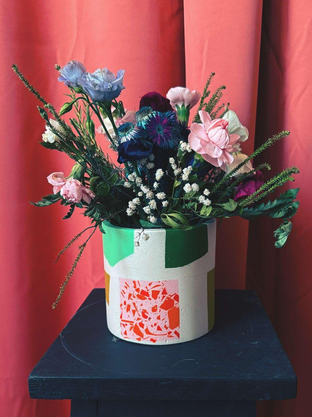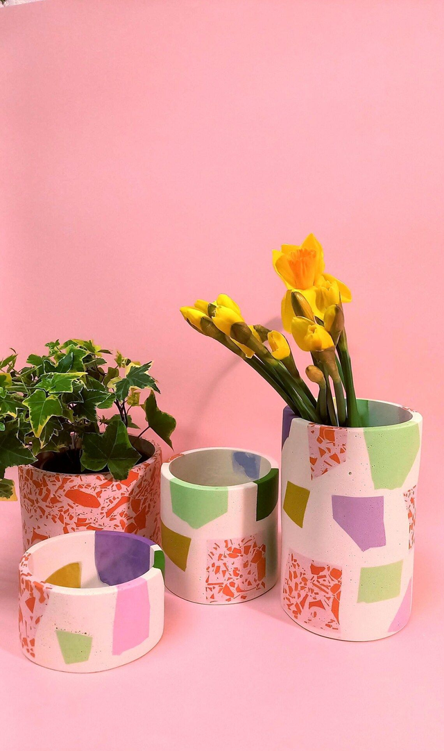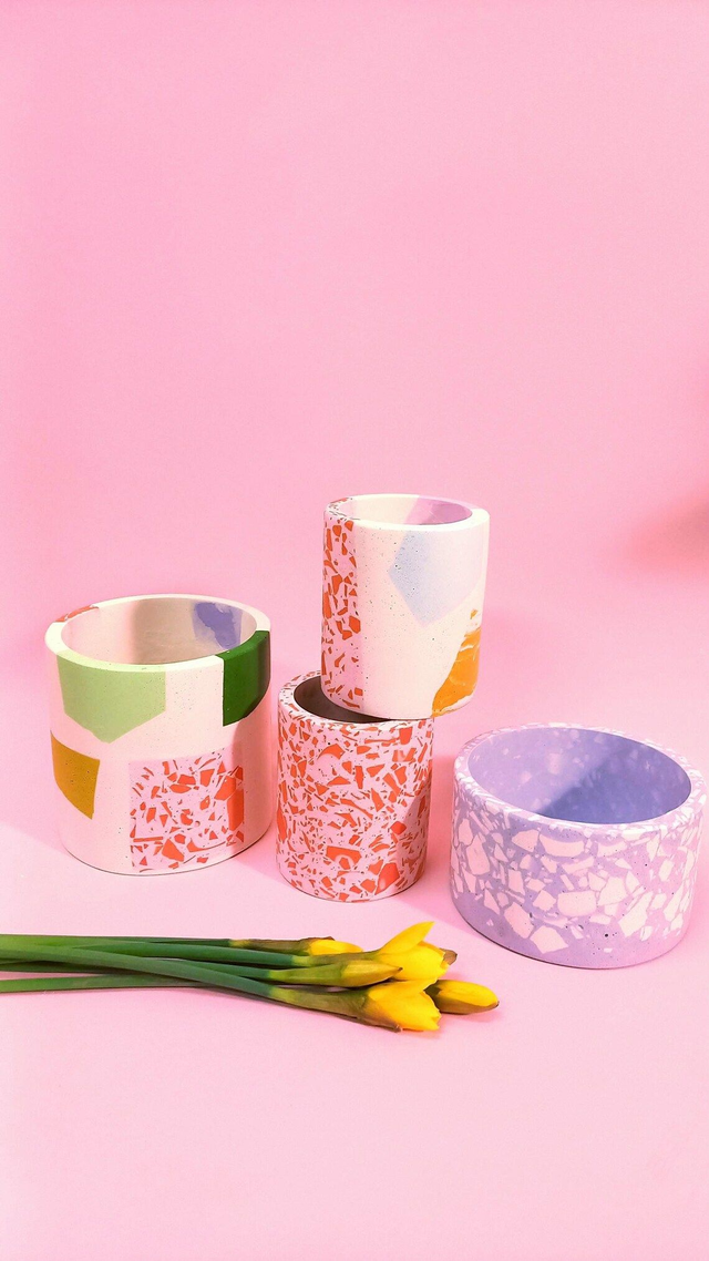 Osłonka na doniczkę / pojemnik terazzo to przepiękny i unikatowy dodatek do mieszkania.