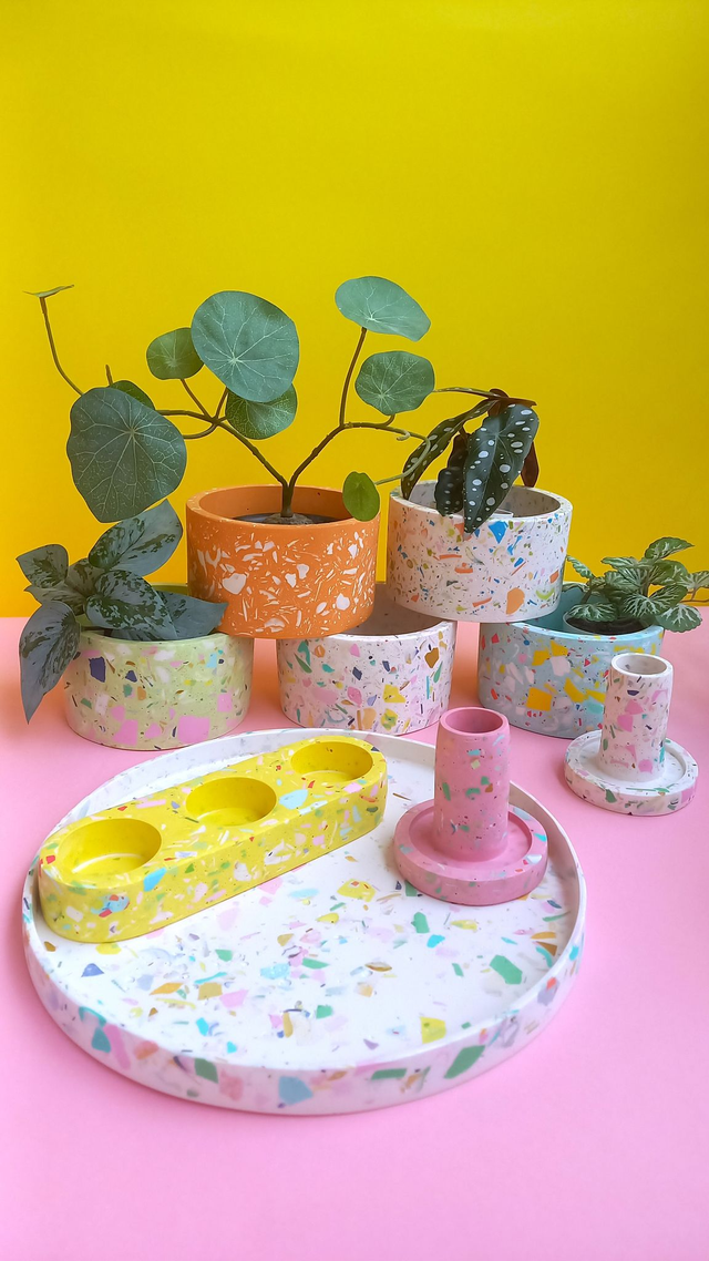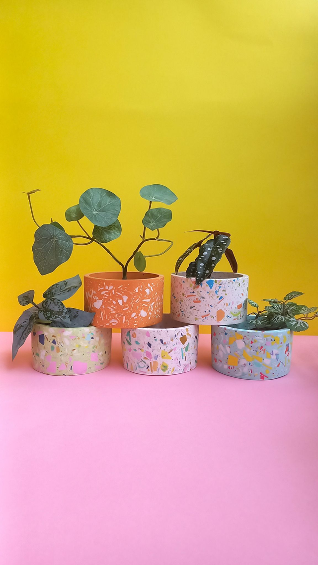 Osłonka na doniczkę / pojemnik terazzo to przepiękny i unikatowy dodatek do mieszkania.