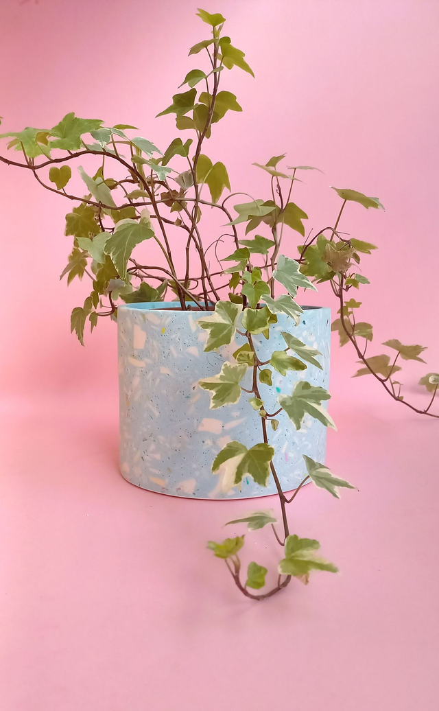 Osłonka na doniczkę terazzo to przepiękny, unikatowy dodatek do mieszkania. Z łatwością zasadzisz w niej monsterę, ficusa, dracenę lub inną, średnia lub dużą roślinę!