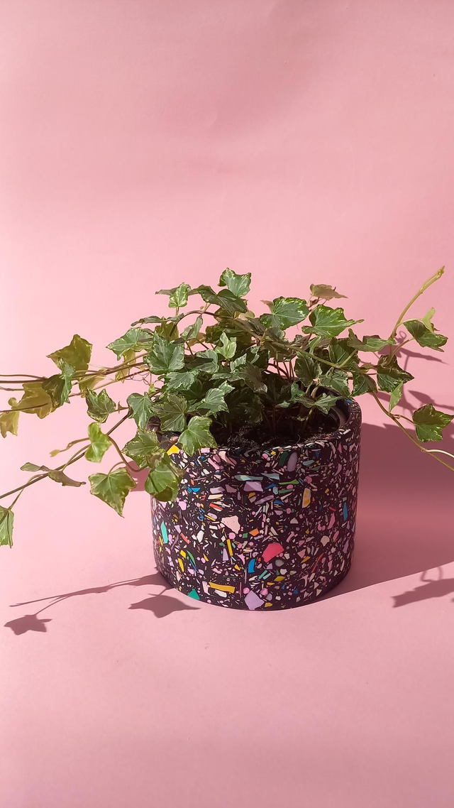 Osłonka na doniczkę terazzo to przepiękny, unikatowy dodatek do mieszkania. Z łatwością zasadzisz w niej monsterę, ficusa, dracenę lub inną, średnia lub dużą roślinę!