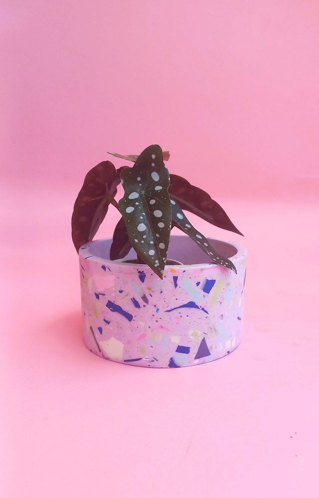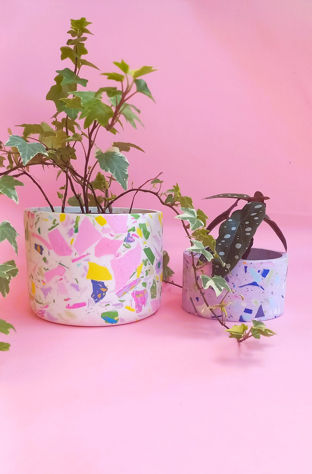 Biała osłonka na doniczkę / pojemnik terazzo to przepiękny i unikatowy dodatek do mieszkania.
