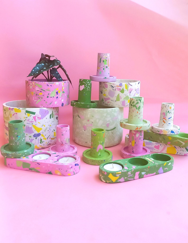 Pojemnik na drobne przedmioty doda świeżej energii dzięki terazzo w wielu kolorach.