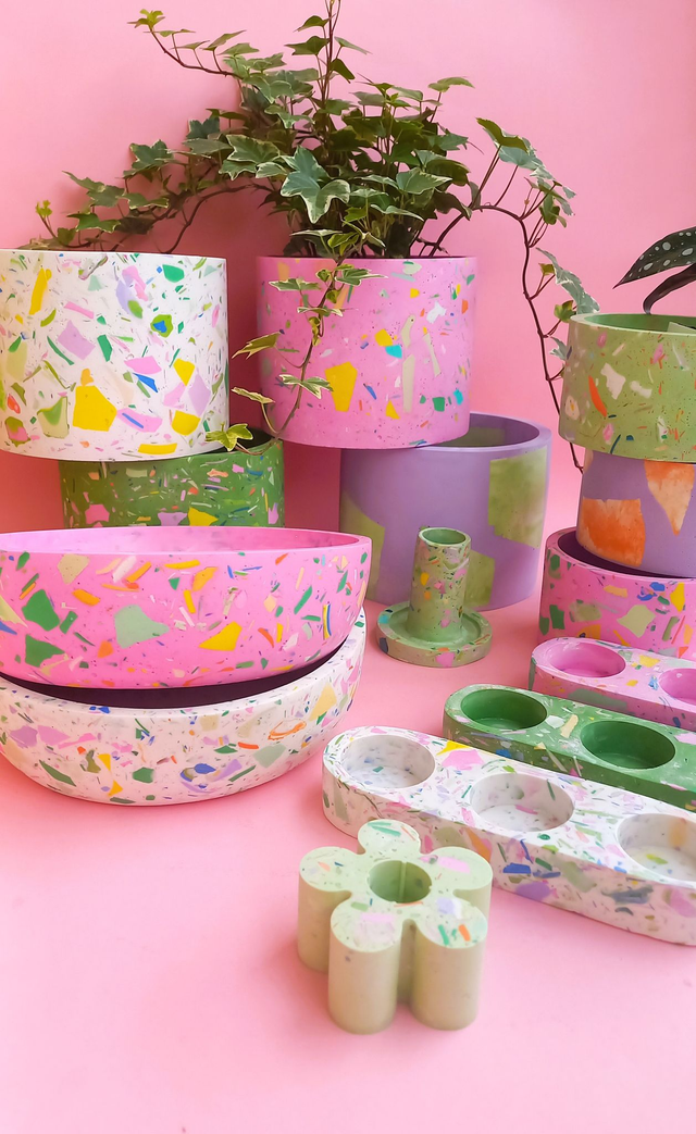 • Pojemnik na drobne przedmioty doda świeżej energii dzięki terazzo w wielu kolorach.