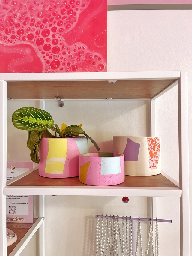 Osłonka na doniczkę, różowa doniczka, kolorowe lastryko