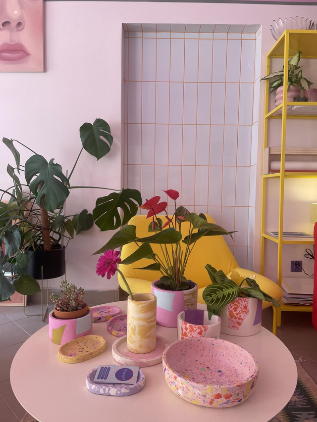 Osłonka na doniczkę terazzo to przepiękny, unikatowy dodatek do mieszkania. Z łatwością zasadzisz w niej monsterę, ficusa, dracenę lub inną, średnia lub dużą roślinę!