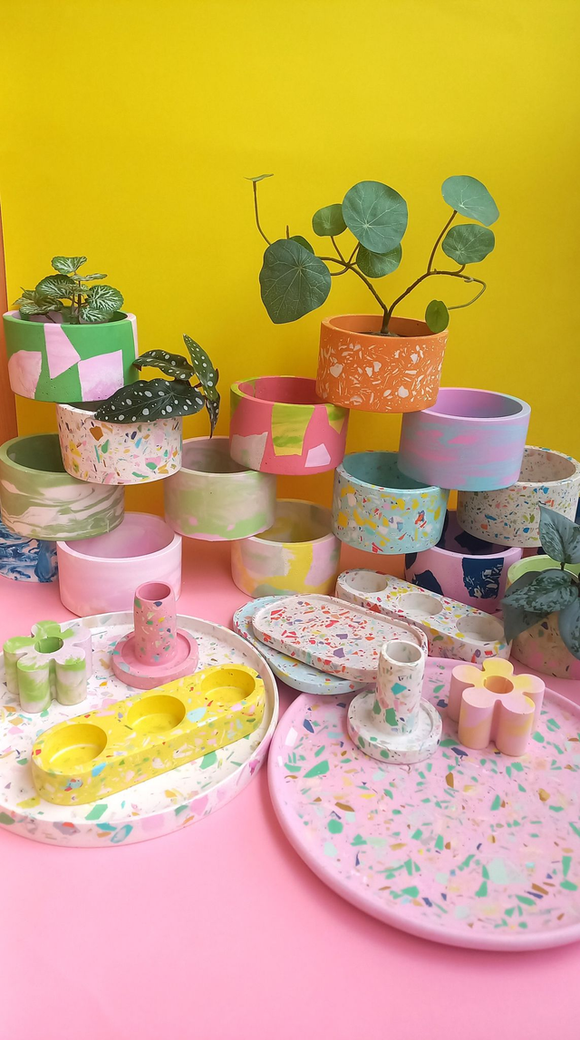 Osłonka na doniczkę / pojemnik terazzo to przepiękny i unikatowy dodatek do mieszkania.