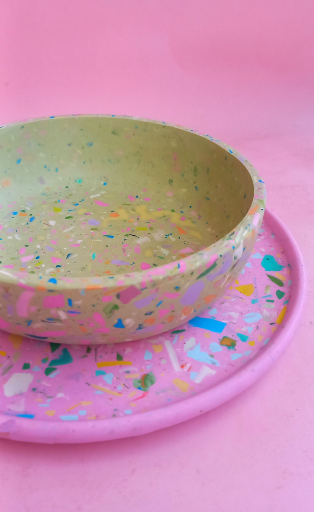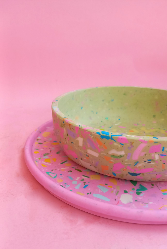 Taca dekoracyjna to przepiękny, designerski dodatek do salonu i kuchni. Wypełniona jest kolorowym lastryko w pastelowych i mocnych kolorach.