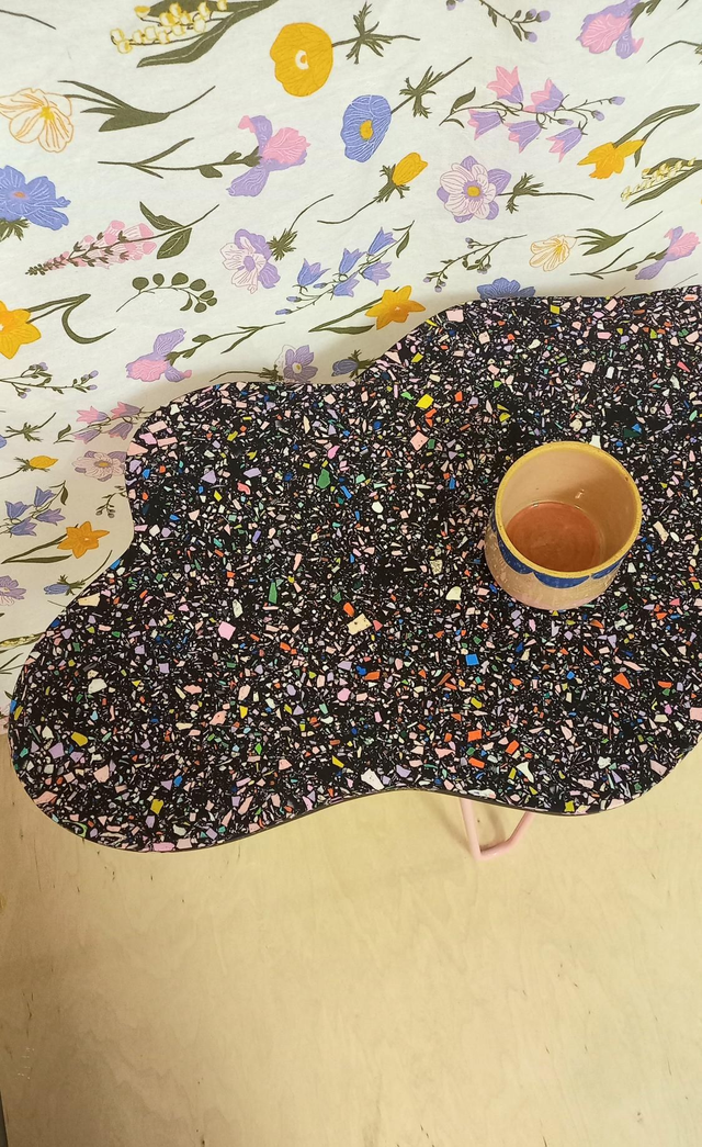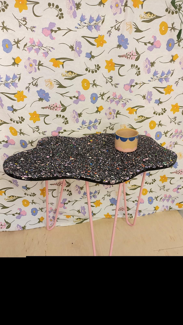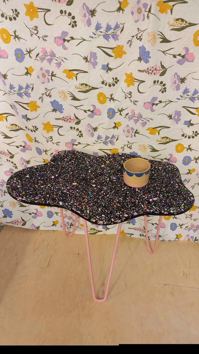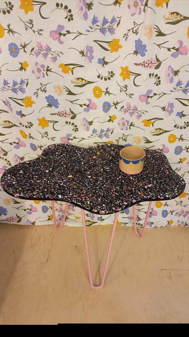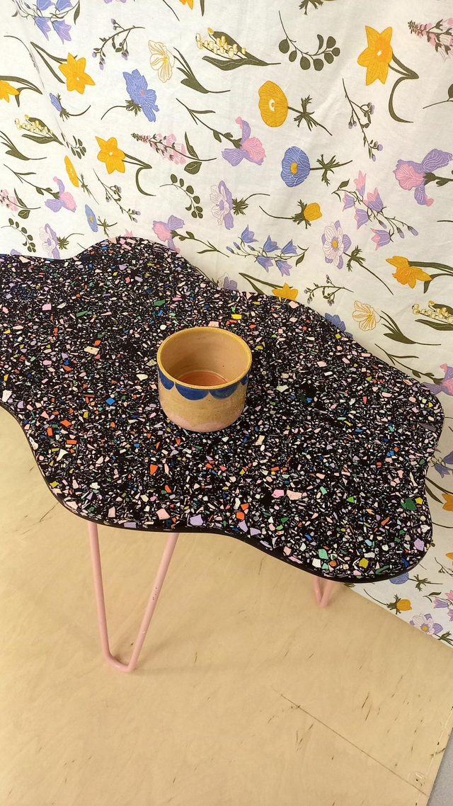Stolik kawowy w kształcie chmurki, który pokochasz. Znajdziesz dla niego zastosowanie jako stolik boczny, stolik do salonu, na balkon, stojak na rośliny. Posiada cudowne kolory lastryko, terrazzo oraz stylowe, metalowe nogi. Jego nieregularny kształt chmury dodaje pozytywnego uroku!