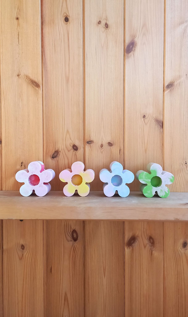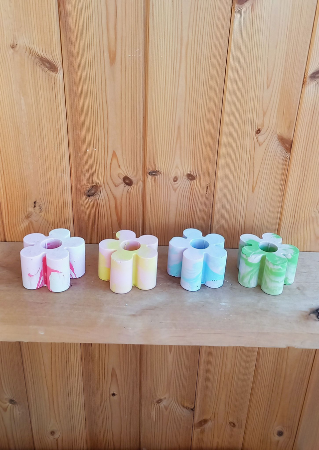 Świecznik kwiat na długą świecę we wzór marble lub terrazzo to radosny, wiosenny akcent na Twój stół i do salonu.