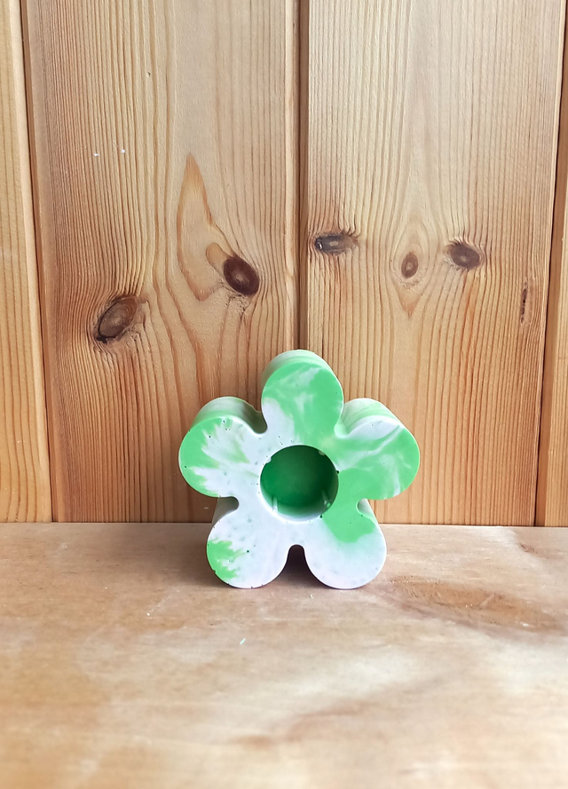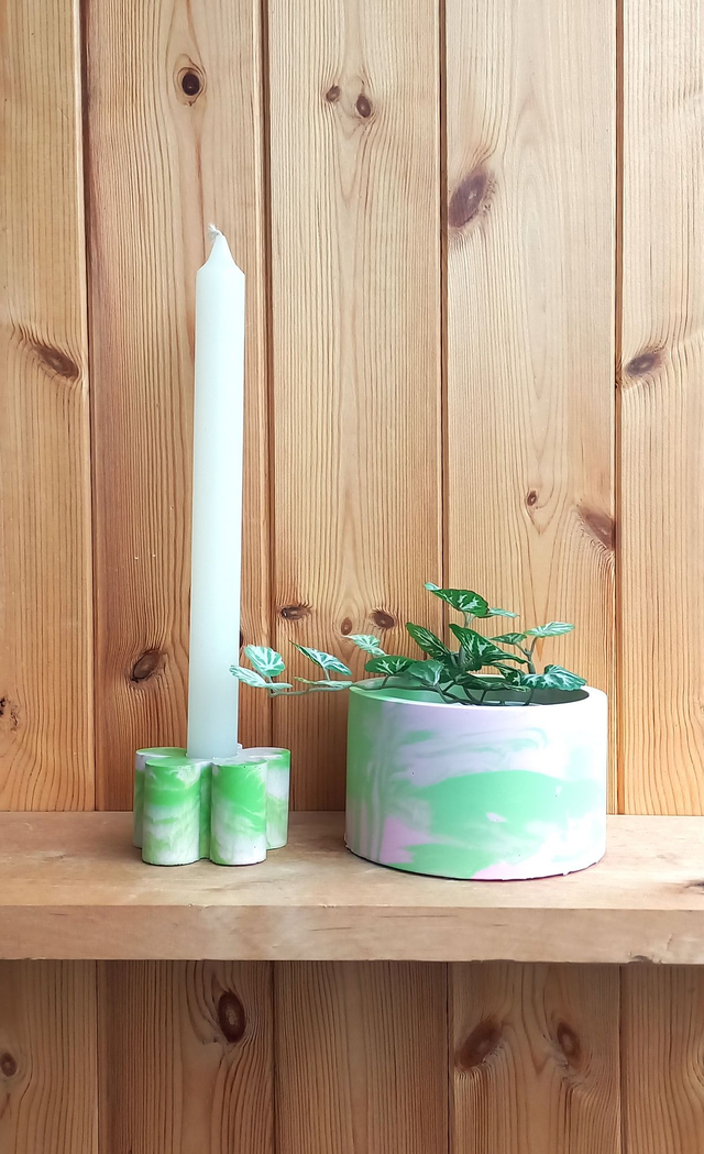 Świecznik kwiat na długą świecę, marble, zielono-różowy