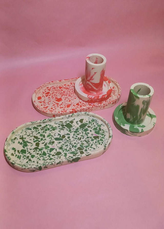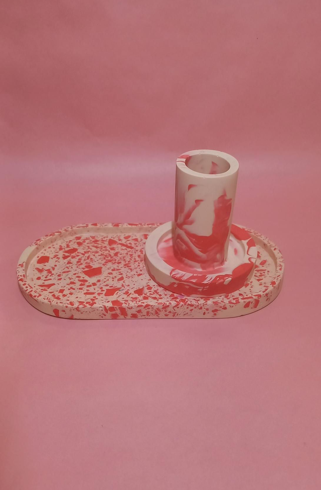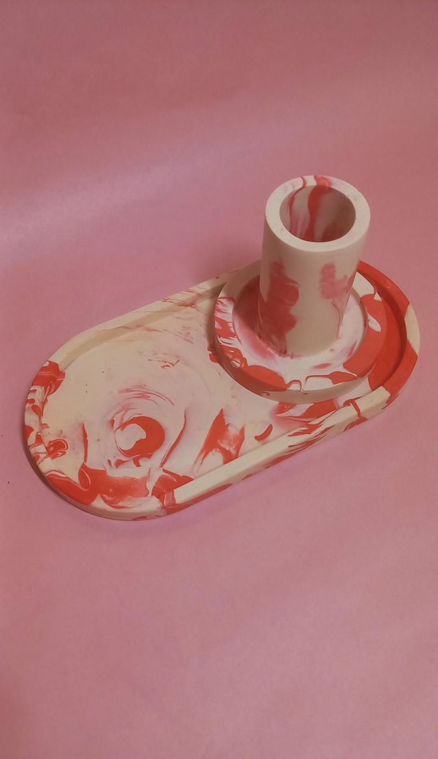 Dekoracyjny świecznik z wzorem marmurkowym to przepiękny, designerski dodatek do salonu i kuchni.