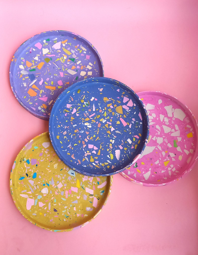 Taca dekoracyjna to przepiękny, designerski dodatek do salonu i kuchni. Wypełniona jest lastryko w pastelowych i mocnych kolorach. To świetna podstawka na drobne przedmioty - klucze, drobne, spinki, biżuterię i wiele innych. Spełni również funkcję jako podstawka pod świece, doniczki z ukochanymi roślinami lub kosmetyki i flakoniki perfum. Jeśli kochasz pozytywne, kolorowe wzornictwo lub szukasz prezentu dla designerskiego wariata :) ta taca może skraść Twoje serce!