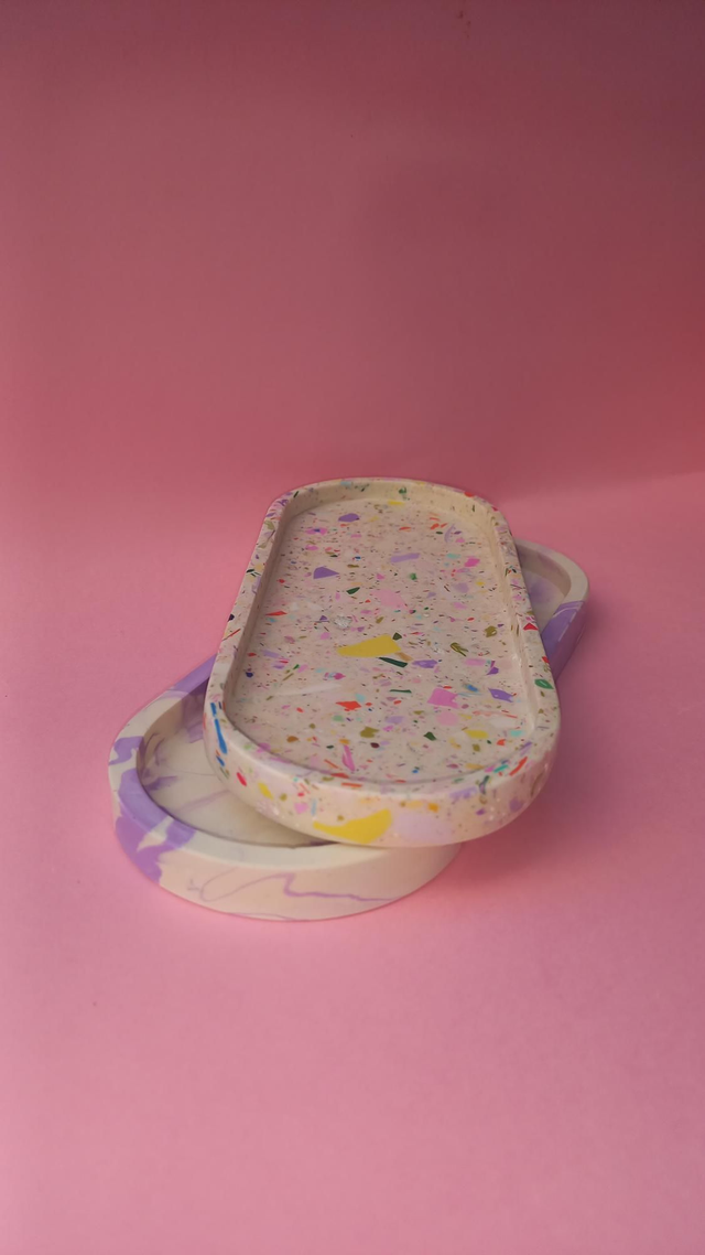 Taca owalna, długa, lastryko, owalna podstawka na akcesoria, beżowa