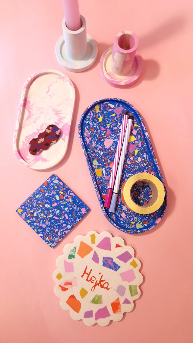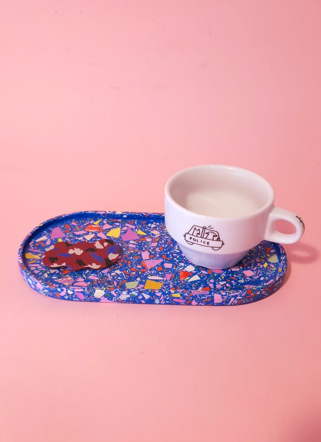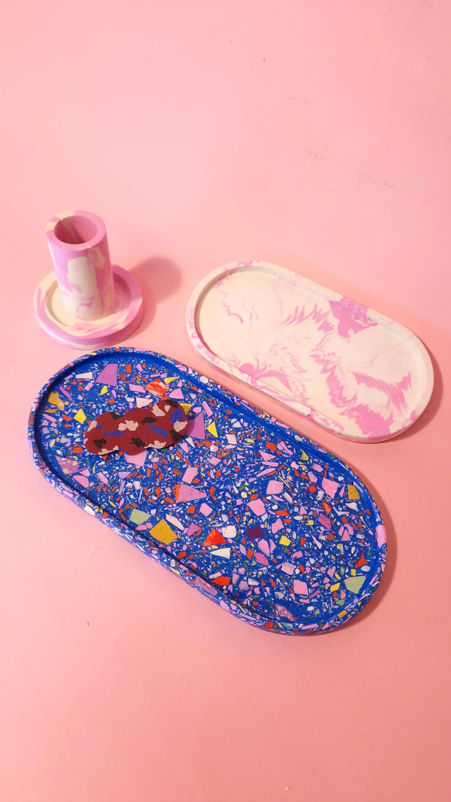 Długa podstawka terrazzo na akcesoria do kuchni, łazienki, salonu. Ułóż na niej biżuterię, akcesoria łazienkowe, świece lub wszystkie rzeczy, które gubią Ci się na biurku. Będzie wyjątkową dekoracją nowoczesnego wnętrza. Sprawdzi się jako wyjątkowy, oryginalny prezent dla każdego kto lubi tworzyć wokół siebie miły nastrój.