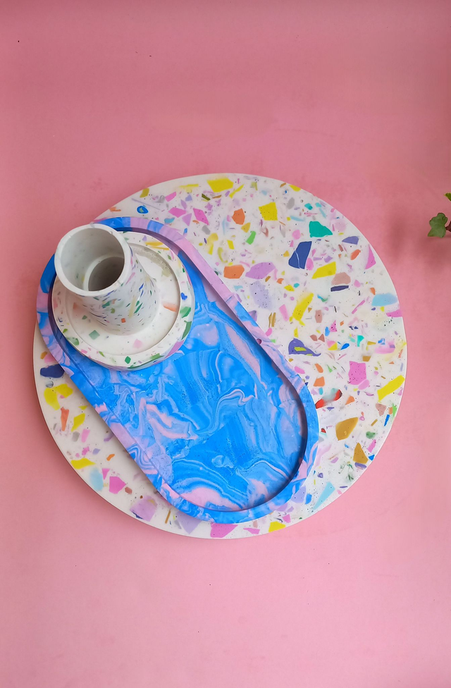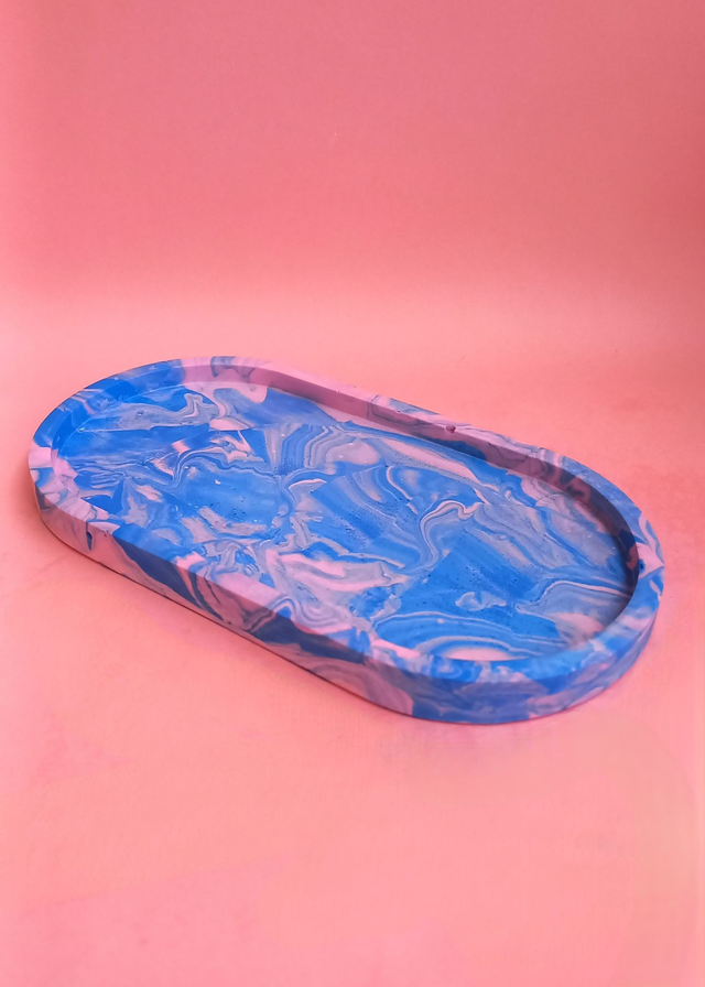 Taca owalna, marble, owalna podstawka na akcesoria, niebieska, różowa