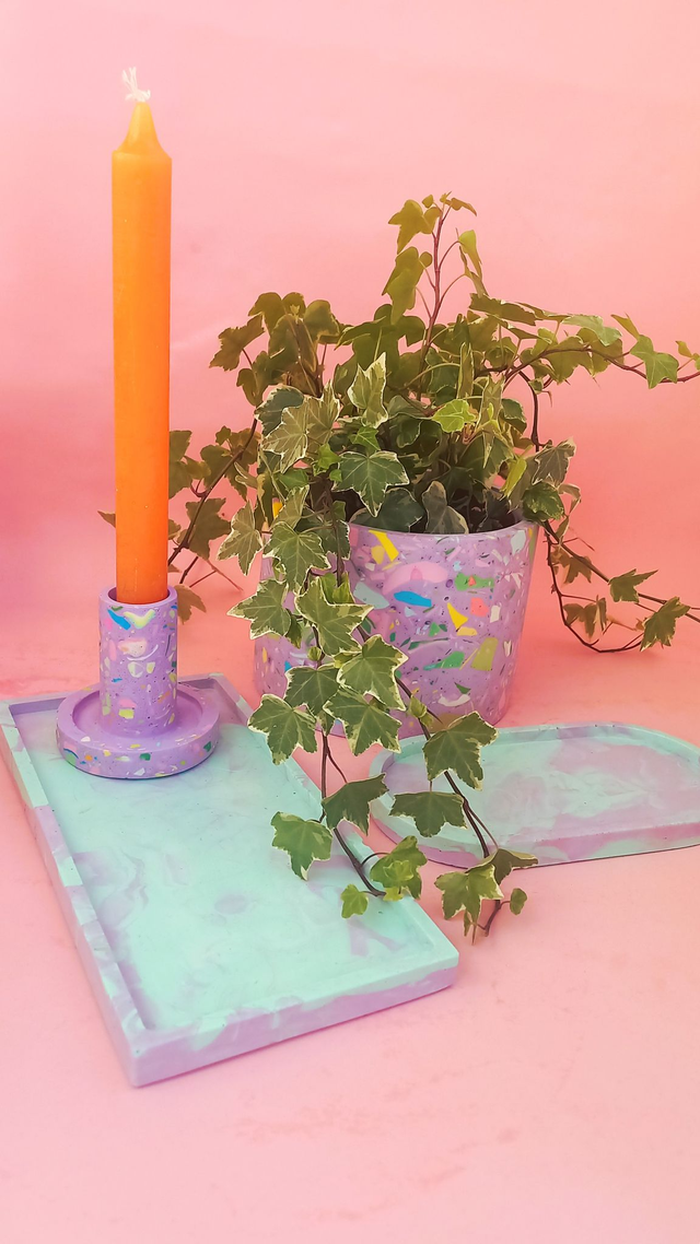 Długa podstawka terrazzo lub marble na akcesoria do kuchni, łazienki, salonu. Ułóż na niej przyprawniki, akcesoria łazienkowe, biżuterię, świece lub przekąski. Ma wiele zastosowań, będzie wyjątkową dekoracją nowoczesnego wnętrza. Sprawdzi się jako wyjątkowy, oryginalny prezent dla każdego kto lubi tworzyć wokół siebie miły nastrój.