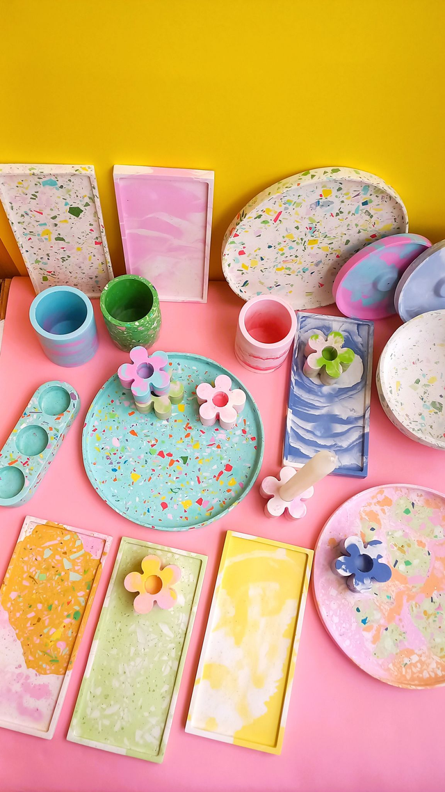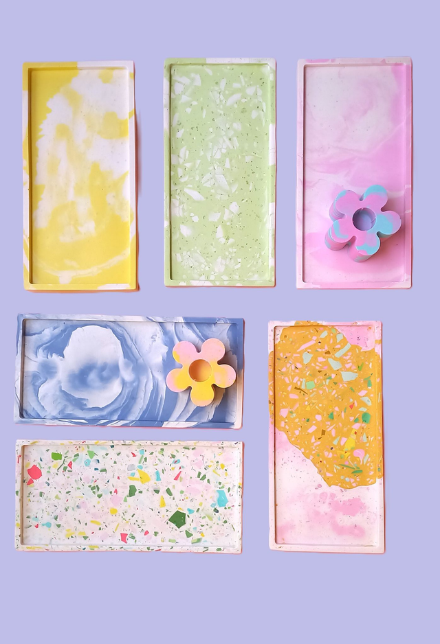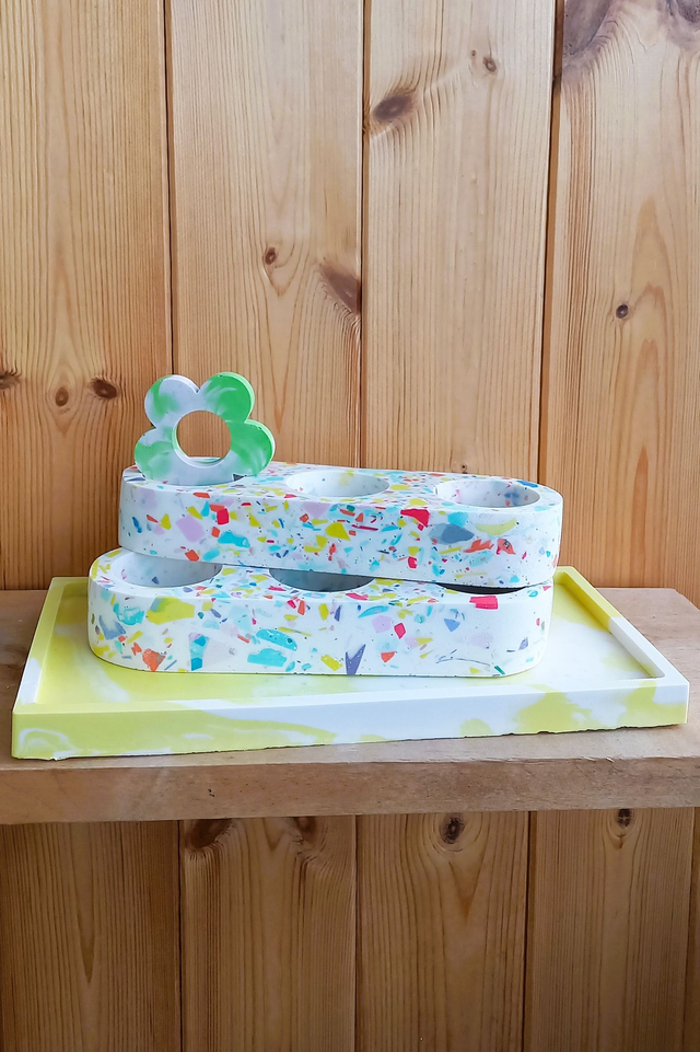 Długa podstawka terrazzo lub marble na akcesoria do kuchni, łazienki, salonu. Ułóż na niej przyprawniki, akcesoria łazienkowe, biżuterię, świece lub przekąski. Ma wiele zastosowań, będzie wyjątkową dekoracją nowoczesnego wnętrza. Sprawdzi się jako wyjątkowy, oryginalny prezent dla każdego kto lubi tworzyć wokół siebie miły nastrój.