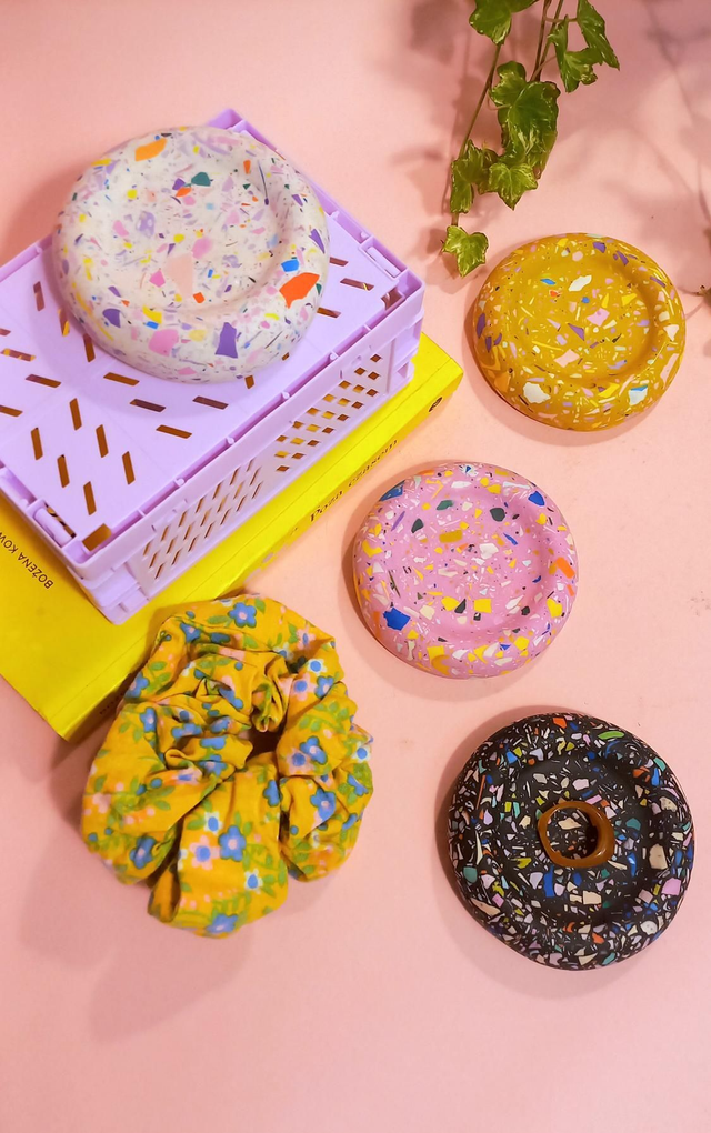 Talerz na biżuterię, pączek, musztardowy, kolorowe lastryko