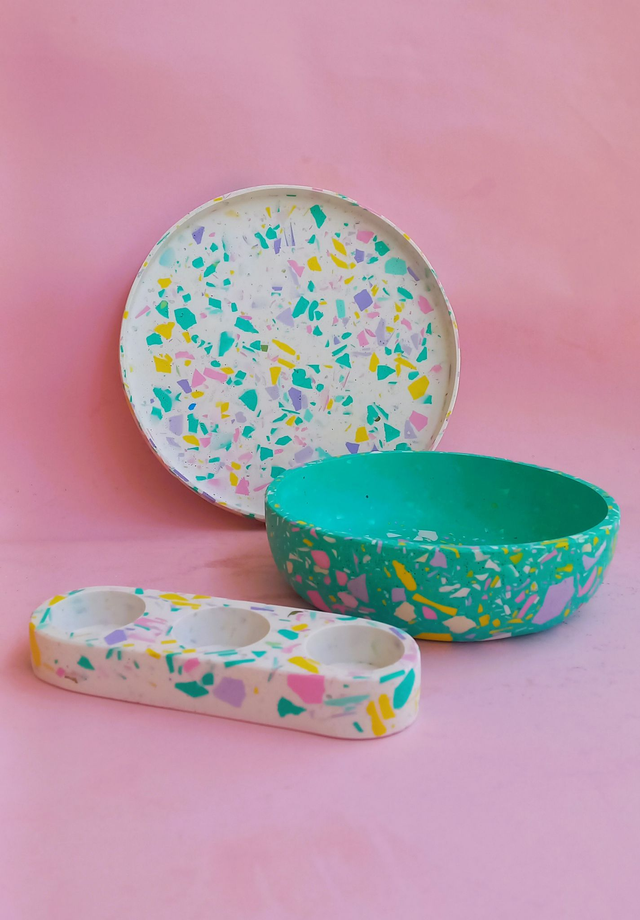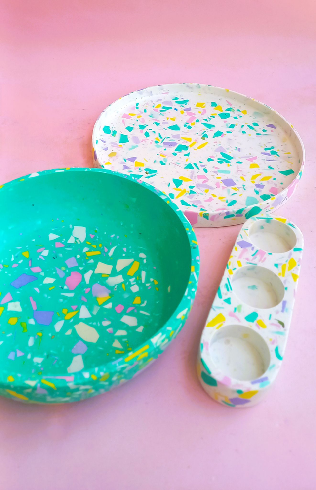 Turkusowa miska terrazzo do kuchni na owoce lub dekoracyjna