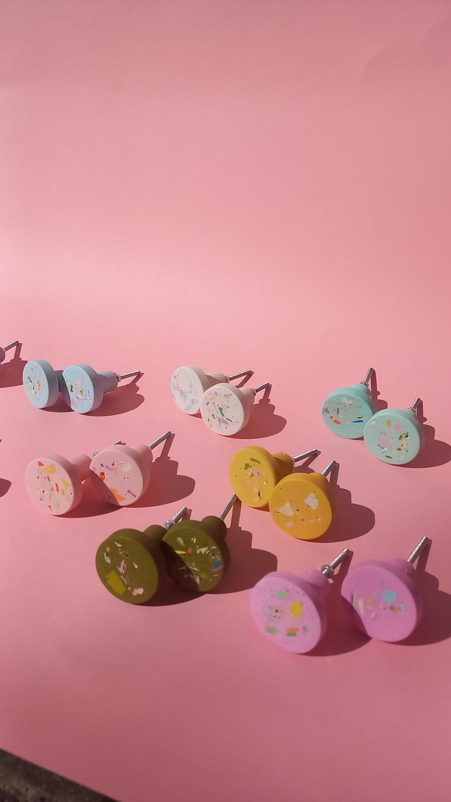 Oryginalny, ręcznie wykonany uchwyt do mebli z wzorem terazzo to idealny pomysł na oryginalne wystylizowanie wnętrza. Udekoruj front swojej szuflady gałką do mebli z wzorem lastryko, aby nadać świeżości swojemu wnętrzu!