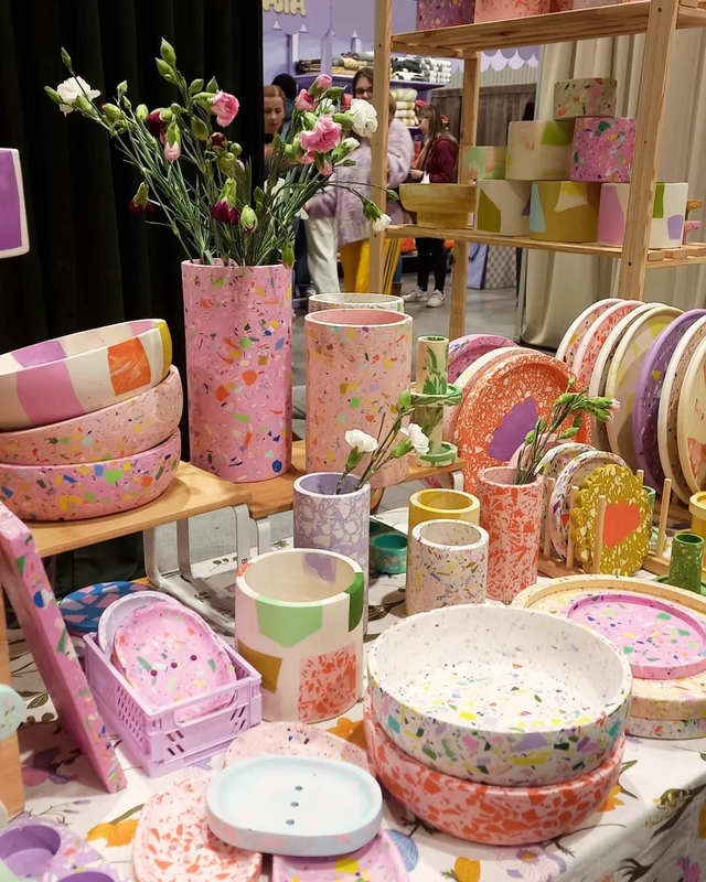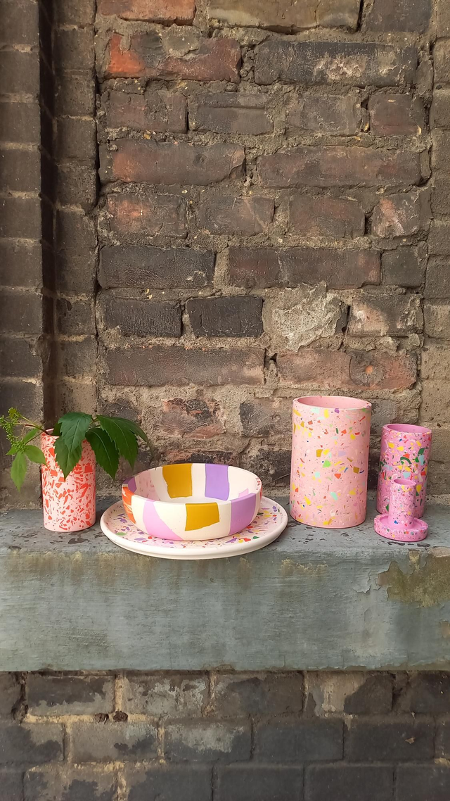 Wazon w kolorowy wzór lastryko na kwiaty i bukiety. Spełnia również zastosowanie jako okrągły pojemnik do przechowywania i organizacji akcesoriów.
