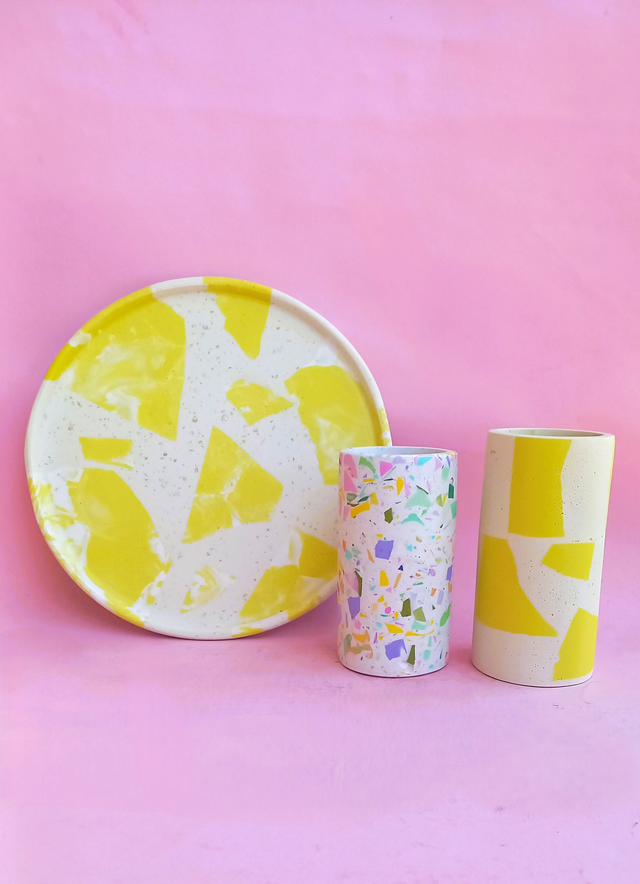 Wazon w kolorowy wzór lastryko na kwiaty i bukiety. Spełnia również zastosowanie jako okrągły pojemnik do przechowywania i organizacji akcesoriów. Przyda się w łazience - na kosmetyki, akcesoria do pielęgnacji, na biurku - do porządkowania długopisów i innych drobiazgów, w kuchni i jadalni - na sztućce, dekoracje lub świecę.