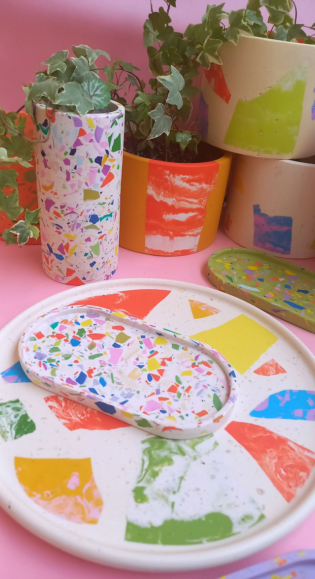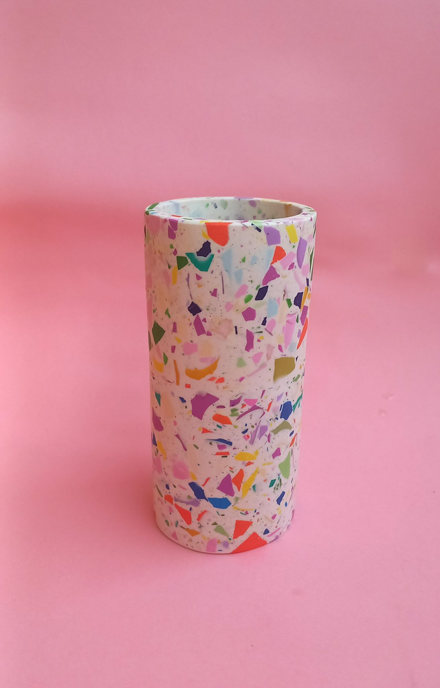 Wazon w kolorowy wzór lastryko na kwiaty i bukiety. Spełnia również zastosowanie jako okrągły pojemnik do przechowywania i organizacji akcesoriów. Przyda się w łazience - na kosmetyki, akcesoria do pielęgnacji, na biurku - do porządkowania długopisów i innych drobiazgów, w kuchni i jadalni - na sztućce, dekoracje lub świecę.