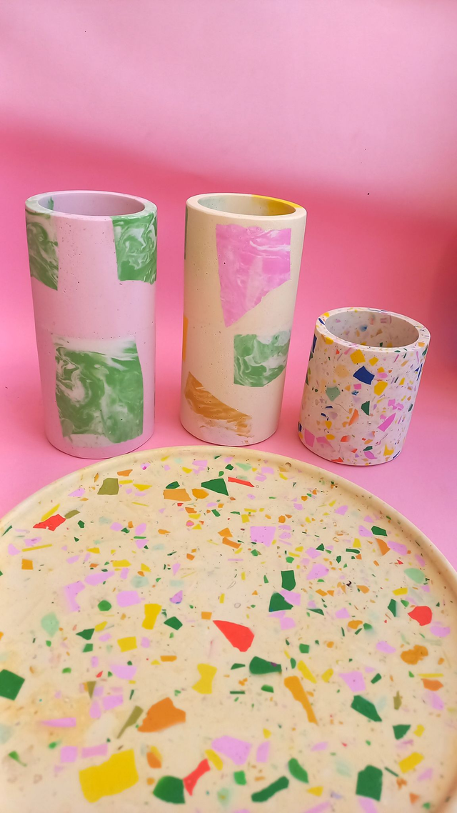 Wazon w kolorowy wzór lastryko na kwiaty i bukiety. Spełnia również zastosowanie jako okrągły pojemnik do przechowywania i organizacji akcesoriów. Przyda się w łazience - na kosmetyki, akcesoria do pielęgnacji, na biurku - do porządkowania długopisów i innych drobiazgów, w kuchni i jadalni - na sztućce, dekoracje lub świecę.